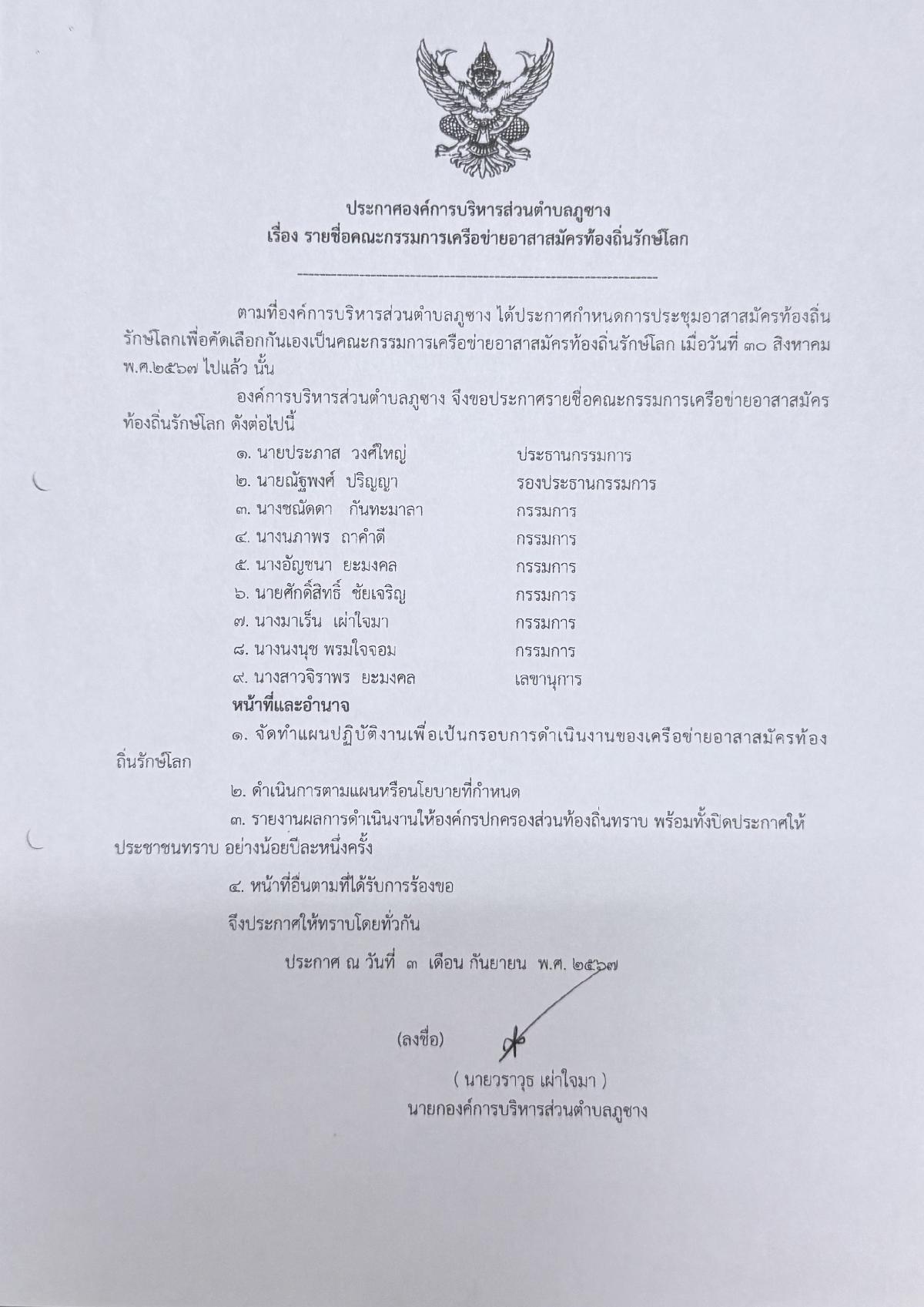 ประกาศเรื่องให้มีการเลือกตั้งสมาชิกสภาองค์การบริหารส่วนตำบลภูซางและนายกองค์การบริหารส่วนตำบลภูซาง