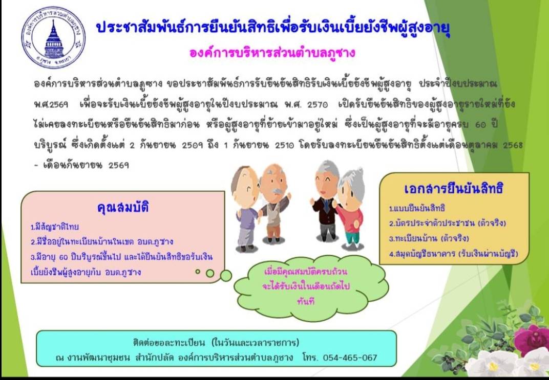 ประกาศรายชื่อผู้มีสิทธิรับเงินเบี้ยผู้สูงอายุองค์การบริหารส่วนตำบลภูซาง ประจำปีงบประมาณ 2569