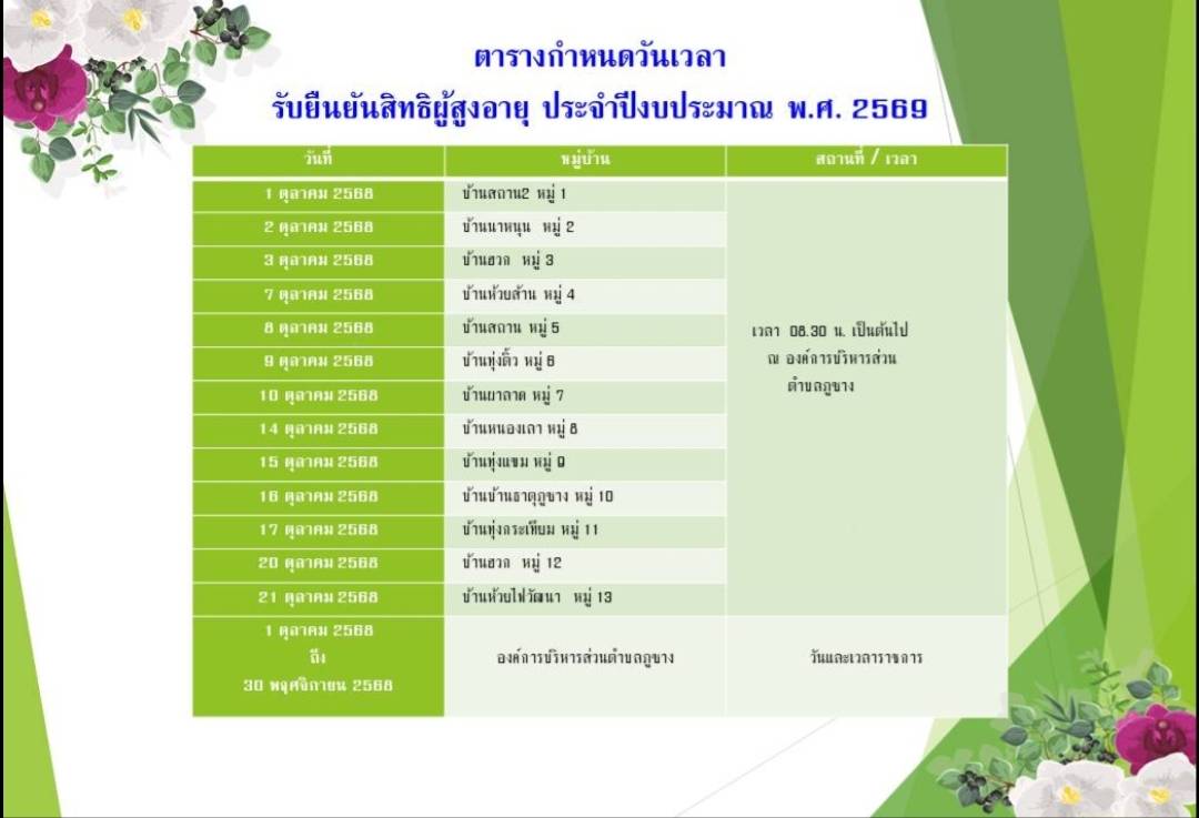 ประชาสัมพันธ์การยืนยันสิทธิเพื่อรับเงินเบี้ยยังชีพผู้สูงอายุ