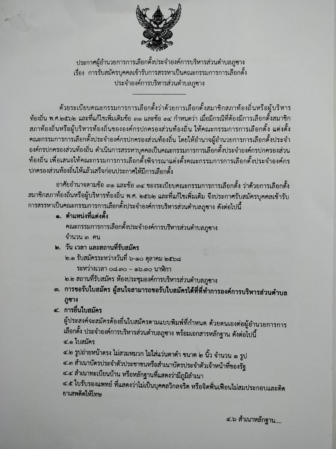 ประกาศผู้อำนวยการการเลือกตั้งประจำองค์การบริหารส่วนตำบลภูซาง เรื่องการรับสมัครบุคคลเข้ารับการสรรหาเป็นคณะกรรมการการเลือกตั้งประจำองค์การบริหารส่วนตำบลภูซาง